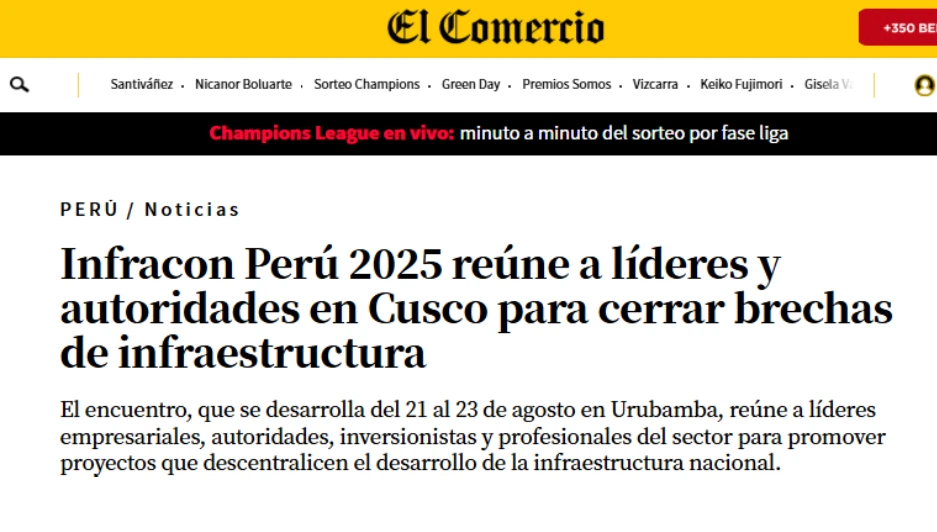 Infracon Perú 2025 reúne a líderes y autoridades en Cusco para cerrar brechas de infraestructura