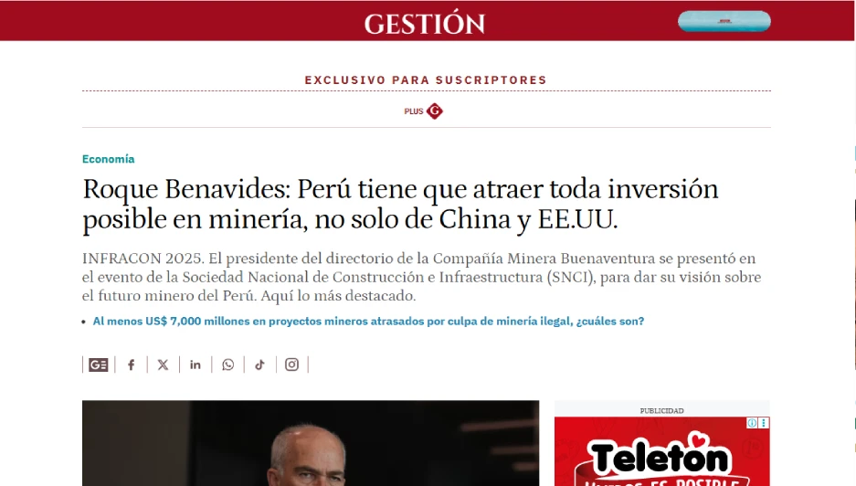 Roque Benavides: Perú tiene que atraer toda inversión posible en minería, no solo de China y EE.UU.