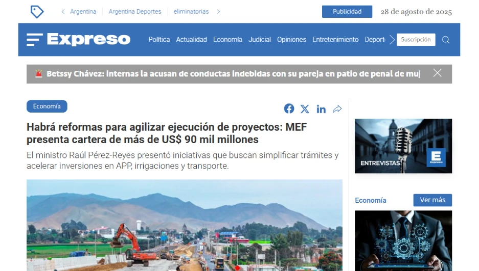 Habrá reformas para agilizar ejecución de proyectos: MEF presenta cartera de más de US$ 90 mil millones